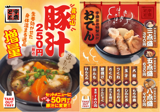 同じく10月1日からは、宇奈ととの秋冬定番メニュー「豚汁」と「おでん」もスタート。