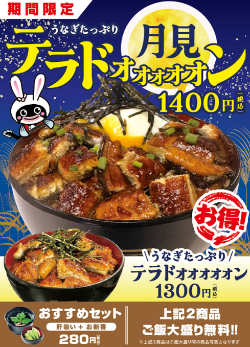 そんな月見どんぶりと並んで登場するのが、宇奈ととファンにはおなじみの【うなテラ丼】。